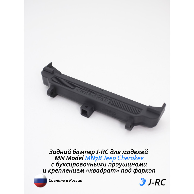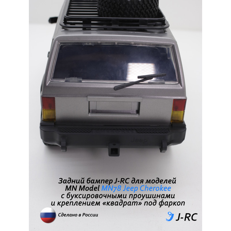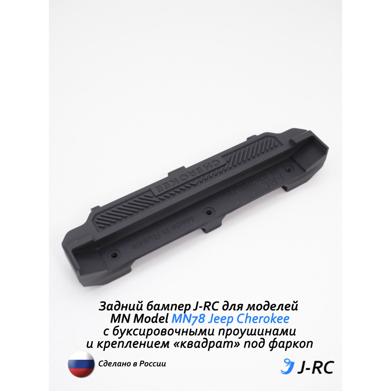 Задний бампер для радиоуправляемой модели MN Model MN78 Jeep Cherokee. Устанавливается на штатные места с помощью штатных винтов. Бампер поставляется окрашенным в черный матовый цвет с предварительным грунтованием. Конструктив изделия может быть изменен производителем без предварительного уведомления. Сделано в России. Внимание! При установке не прилагайте чрезмерных усилий при затяжке винтов, что бы не сорвать резьбу в кузове! Перед завинчиванием проверьте, что бампер и стекла задних фонарей заняли свое положение! Материал - полимер